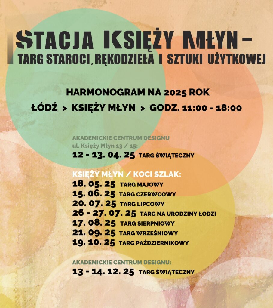 Zapraszamy na największy plenerowy targ w Łodzi. To już siódmy sezon targowy na Księżym Młynie z Przędzalnią Sztuki. Wydarzenie organizowane jest od wiosny do jesieni nieprzerwanie od 2019 r. Magiczna atmosfera Księżego Młyna co roku przyciąga kilkadziesiąt tysięcy miłośników unikatowych rzeczy z duszą i setki najlepszych wystawców z całej Polski.