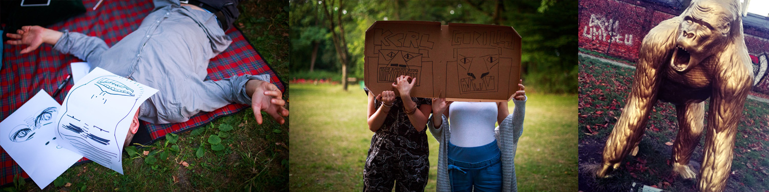 ZADANIE 1 // SPACER SZLAKIEM MIN // Wybierz się na spacer po Księżym Młynie. Znajdź 13 obiektów.* Pierwszy z nich to Goryl Karol, przy którym śmiało możesz wykrzyczeć swoje emocje! Przejdź cały szlak Min i znajdź 12 pozostałych ukrytych na budynkach tablic i spójrz na historyczną przeszłość Księżego Młyna z perspektywy ludzkich emocji.